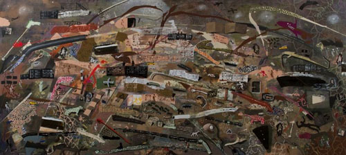Se organiza así un itinerario que tiene su punto de partida en la posibilidad de articular la visión de las cosas jugando, y en las enseñanzas para la vida que de ello se extraen. Siguiendo con la representación de la tupida red de este mundo extraño construido por los seres humanos: edificios, medios de transporte y comunicación, redes digitales, etc., en la que todos deambulamos hoy. Vienen después la expresión de la protesta y el rechazo de las injusticias, la violencia y el daño, con el contraste del deseo humano de elevación y justicia. Y, finalmente, como conclusión del itinerario, los quiebros de la luz que se alcanzan a ver en el ensueño: la luz tenebrosa de las pesadillas y la luz de plenitud de los sueños abiertos, aquellos que nos conducen a la iluminación de un mundo más allá de éste, en el que habitan eros y la expansión de la vida. Esa iluminación que la gran pintura, en la luz, hace visible.