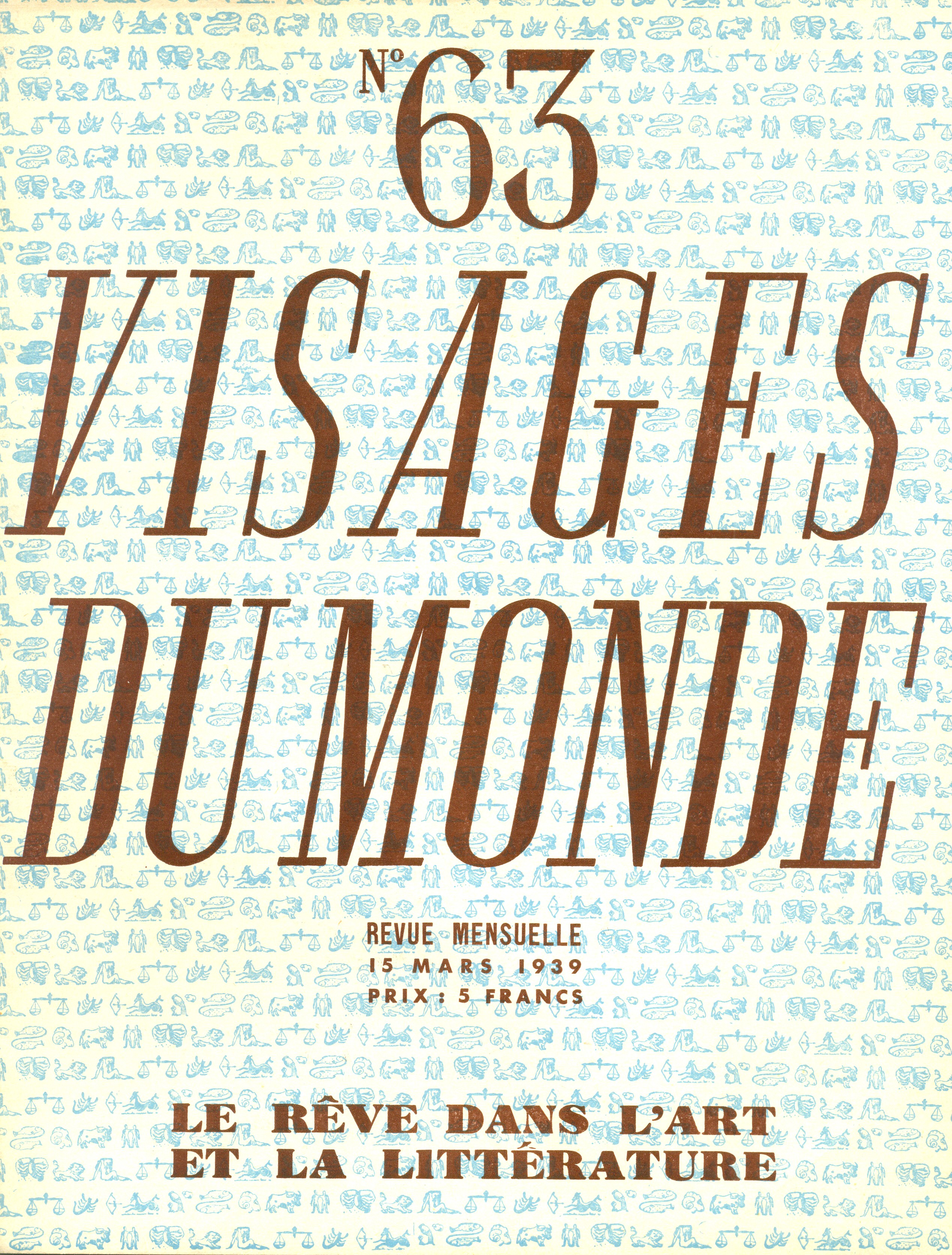 In addition to this important document, in 1939 the painter Frédéric Delanglade, who had become a member of the Surrealist Group in 1933, organized, at the Galerie Contemporaine in Paris, an exhibition called Le Rêve dans l’art et la littérature, de l’antiquité au surréalisme [The dream in art and literature, from antiquity to Surrealism], which was open to the public from March 24 to April 12. The exhibition had the support of the monthly magazine Visages du monde [Faces of the world], which on March 15 published a number of the same name [fig. 6].