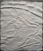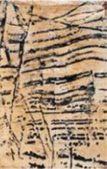 Se trata de hacer brotar las huellas, las imágenes ancestrales, fijadas en la materia. Al superponer telas y papeles sobre rocas de una antigüedad de millones de años, y que por tanto albergan los registros más remotos del devenir de nuestro planeta, de su constitución. Diego Moya nos lleva a través del fluido de la imaginación material a la piel de la tierra. Y lo consigue frotando los soportes que superpone sobre las rocas, para así obtener la imprimación de esas huellas. Este tipo de procedimiento nos lleva directamente al frottage [frotamiento], el procedimiento artístico descubierto por Max Ernst en 1925, y que en el marco del surrealismo se convirtió en el paralelo para las artes visuales de lo que la escritura automática suponía para la literatura. La mirada elige la superficie donde frotar y obtener la imprimación, pero el resultado que así se consigue es hacer brotar las imágenes no conscientes… La materia habla casi directamente, ayudada prácticamente tan sólo por la mirada que elige y delimita. Aunque, además de la mirada, es necesario el contacto, o aún más precisamente, el tacto, que hace posible la imprimación. Como observa Gaston Bachelard (1942, 165), la “coagulación del agua con la materia no se comprende del todo si nos contentamos con la observación visual. Hay que agregar una observación del tacto.” Delimitación visual y tacto, así obtiene Diego Moya las huellas fijadas en las rocas ancestrales, resultado de la fusión a lo largo de millones de años de los cuatro elementos naturales, y que ahora conviven con las aguas. Conviene, en cualquier caso, introducir una distinción entre huella, en un sentido general, e impronta. Como señala George Didi-Huberman (2008, 27) en su densa y estimulante reconstrucción del itinerario de la impronta, desde los registros fósiles a las formas técnicas de acuñación, o a su creciente utilización en las artes, “hacer una impronta” quiere decir “producir una marca por la presión de un cuerpo sobre una superficie”. Y justamente eso es lo que lleva a cabo Diego Moya en Asilah, sobre los acantilados y rocas al borde del mar. Superponiendo telas o papel sobre las piedras, produce improntas: imágenes que nos transmiten una “escritura” cifrada, precisamente porque son imprimaciones directas de las superficies de esas piedras, que nos conducen así, directamente, muchos millones de años hacia atrás en la edad de la tierra. Hay en ello, además, una voluntad, explícita y consciente, de poner en relación esos registros ancestrales de la memoria de la tierra con la memoria digital de la cultura de hoy. Y en ese sentido Diego Moya (2009) ha acuñado, para caracterizar su trabajo, los términos “gigabytes” y “terabytes de piedra”, que en el primer caso describe con estos términos: “Sedimentos de arenas de sílice de muy diferentes densidades que fueron formando esos estratos que hoy admiramos, y que actúan como millones de gigabytes de memoria almacenados a perpetuidad allí, guardando su secreto.” Como es de conocimiento general, los gigabytes son unidades de memoria utilizadas en informática, cuyo soporte físico es una lámina, precisamente de silicio, que constituye un chip. Justo aquí se sitúa uno de los aspectos, una de las claves de mayor interés artístico del trabajo de Diego Moya con sus improntas de la piel de la tierra. Pues, como subraya Didi-Huberman (2008, 309) lo que caracteriza ante todo a la impronta es “una separación que se imprime y nos toca, incluso nos «impresiona»”. Pero así, por esa separación o distancia respecto a la imagen de algo material que ya no está en la impronta, ésta expresaría a la vez un doble malestar, tanto en la representación como en la historia. Malestar en la representación: “En cada impronta singular, en efecto, el juego del contacto y de la separación alcanza, desordena, transforma las relaciones esperadas del parecido, de modo que lo óptico y lo táctil, la imagen y su proceso, la mismidad y su alteración, se enmarañan repentinamente, a riesgo de enturbiar un pensamiento que, por las necesidades de su propia claridad o distinción, tendía espontáneamente a desenmarañar las cosas contradictorias.” Y en cuanto al malestar en la historia, expresión de un «síntoma-tiempo», Didi-Huberman (2008, 310) indica: “En cada impronta singular, en efecto, el juego del contacto y de la separación desordena nuestra relación con el devenir y con la memoria, de modo que el acto y el retraso, la týche [azar] y la téchne [destreza], el Ahora y el Otro tiempo, se enmarañan igualmente en una formación inédita y perturbadora para el pensamiento.” En último término, hacer hablar a la materia permite aquello que Diego Moya demanda al trabajo artístico, tal y como lo formula en la entrevista que aparece en este catálogo: hacer “visible lo invisible”. Una formulación que nos lleva atrás, esta vez en el tiempo artístico, a lo que Paul Klee expresó en la primera frase de su Confesión creativa (1920): "El arte no reproduce lo visible, sino que hace lo visible." Y también a lo que Maurice Merleau-Ponty (1964, 47) planteaba en su libro póstumo Lo visible y lo invisible, la necesidad “si existe un mundo”, de abordar la tarea de comprender “cuáles pueden ser las relaciones del mundo visible y del mundo invisible”. Con las obras de Diego Moya, lo que era invisible, se hace visible. Aunque, obviamente, no en su totalidad: lo que vemos es un registro, una huella, una impronta. Vemos y a la vez no vemos: estamos lejos del “parecido” de las cosas, porque la distancia en la representación nos lleva a otro mundo distinto al nuestro, a otra materia. Nos remontamos en el tiempo y, a la vez, no podemos, porque la distancia de lo que fijó la huella que alcanzamos por contacto no se puede superar, y por eso alcanzamos a ver una imagen oscilante de algo que estuvo, que fue, pero que ya en nuestro ahora, no 
