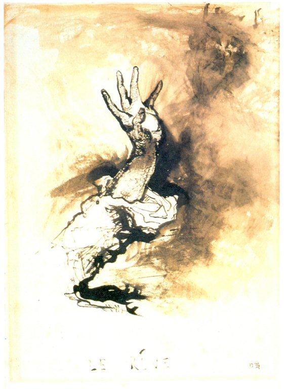 After Goya, after his foundational depiction of the dream, mention must be made of the drawings of Victor Hugo, which on so many occasions are tantamount to a wish for an immediate, nonconscious expression of the image, although I’ve already mentioned above the subtleties separating the great poet’s conception of the dream from that of the Surrealists. A small yet highly expressive drawing with the inscription le rêve [the dream] in capital letters, contained in an album, was exhibited at the Maison Victor Hugo in Paris in 1930 [fig. 10].